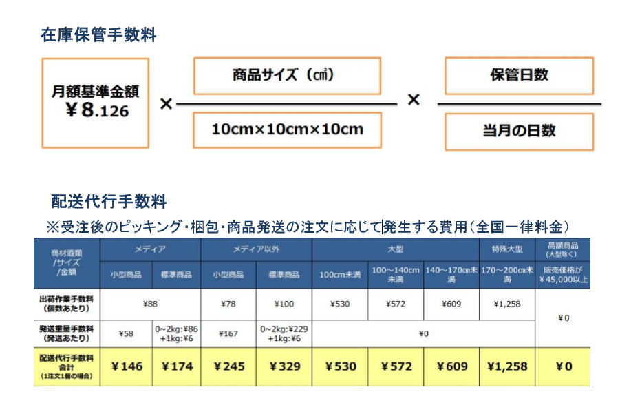| 在庫保管手数料 | 商品を保管している期間の費用(日数) |