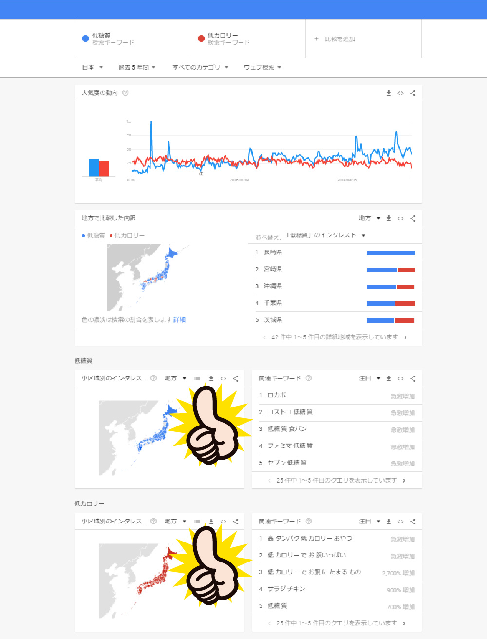 例えば「低糖質」というキーワードに対していろんな業者さんが
