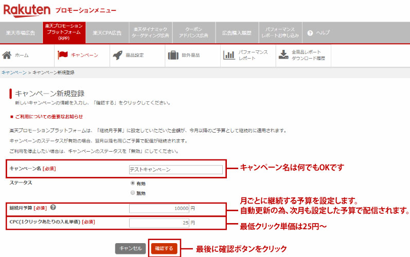 「キャンペーンの登録」