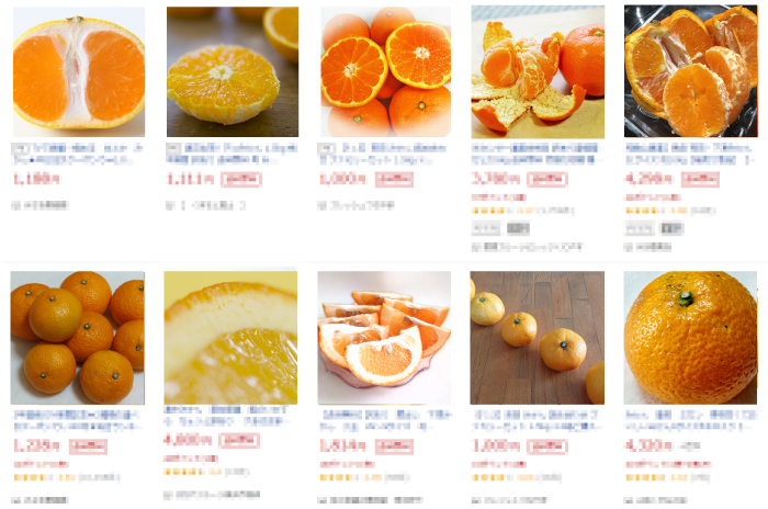 画像が一番大きく表示されて、みかんのプリっとした断面やジューシーな感じ、「シズル感」が出ている写真が多いと思いませんか?