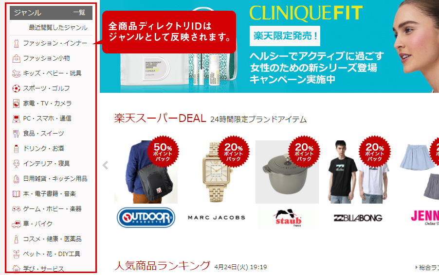 全商品ディレクトリIDとは楽天市場のジャンルのこと