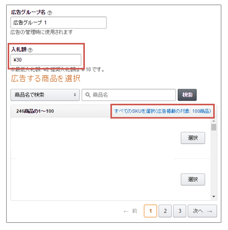 広告表示1位とは、検索結果下部や商品詳細ページの1ページ目1番目に表示させたいということになる。