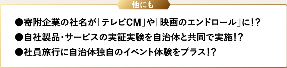 ※企業版ふるさと納税制度では、返礼品をもらうことは禁じられています。
